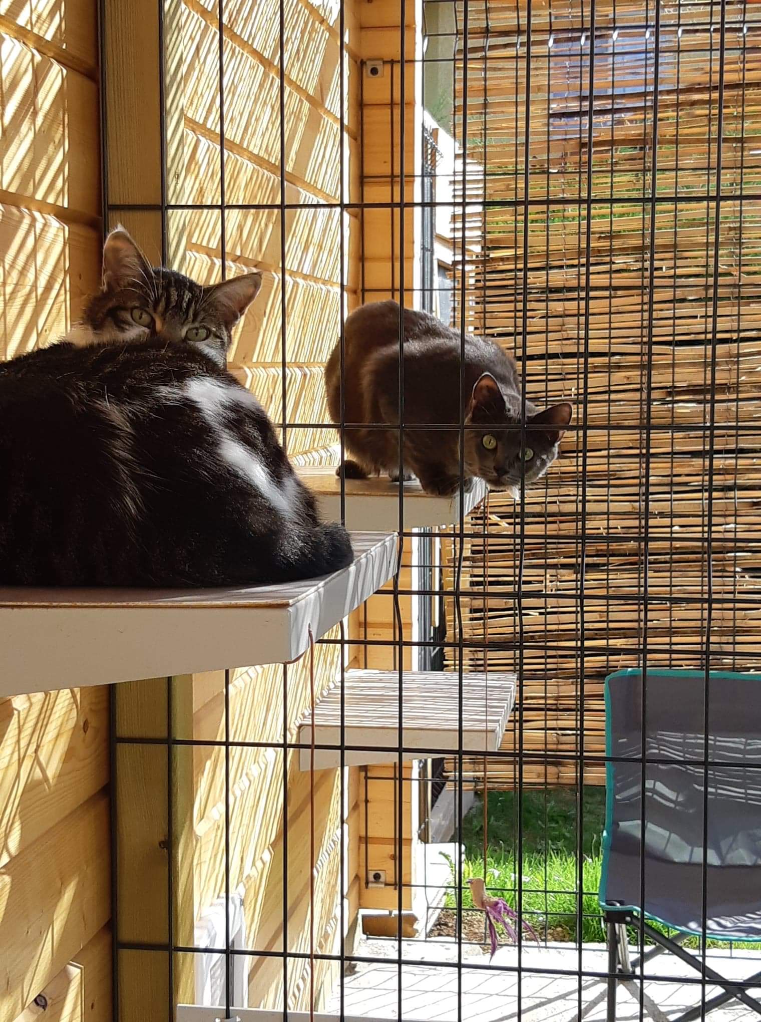 - Les chats disposent d'un box intérieur privatif avec accès à un jardin privatif. Possibilité de mettre deux chats de la même famille ensemble.
